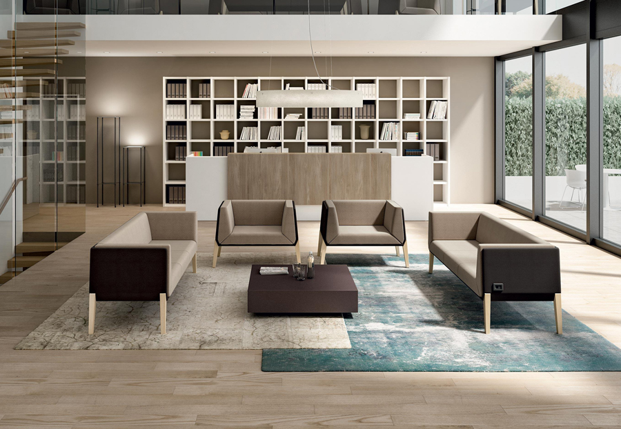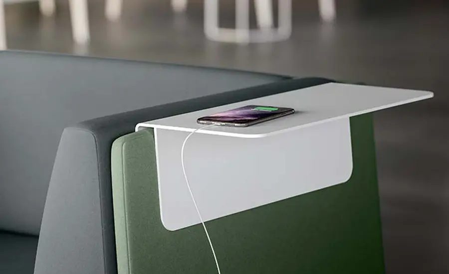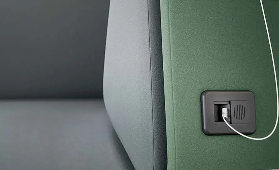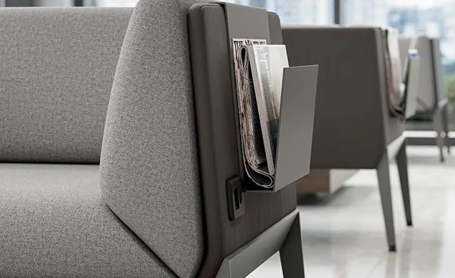 The Accord armchairs and sofas are equipped with elements that make waiting, working or chatting more pleasant, for example desks, USB sockets and magazine holders.