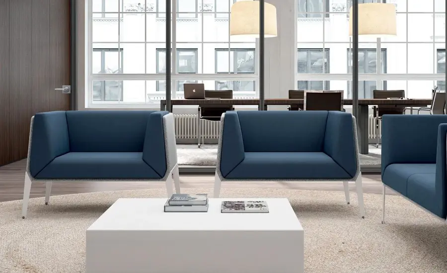 Sofas and armchairs from the Quodrifoglio's collection Accord are the ideal solution for simple, functional decor in any common area - waiting rooms, receptions or conversation areas. The tall version provides privacy for informal meetings. The shell and the seat come in combinations of two colours which creates particularly elegant solutions.