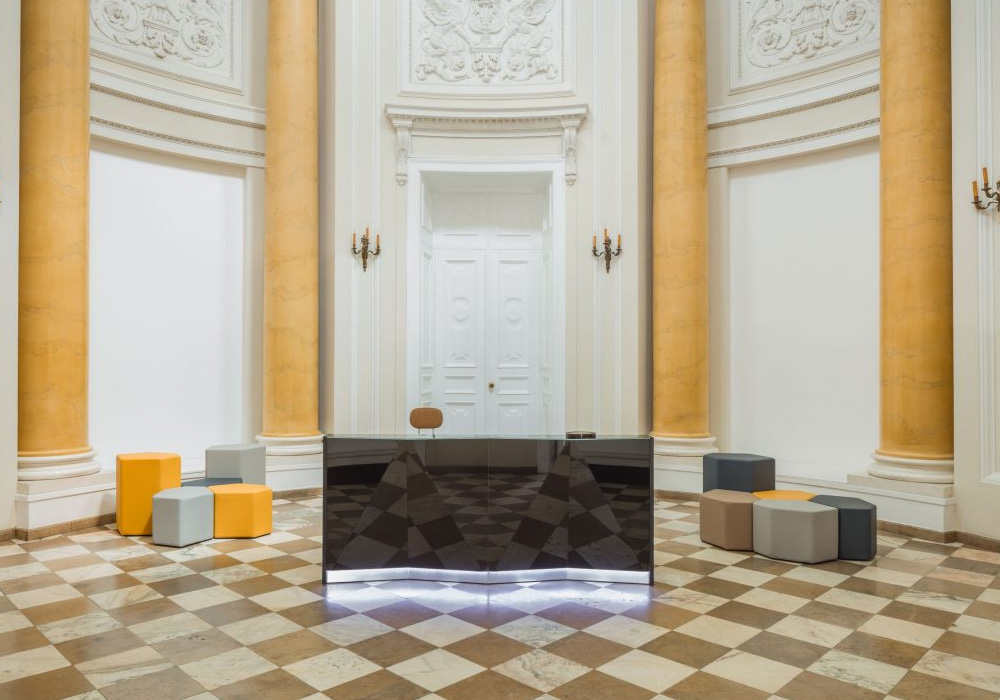 A modular construction allows creating various straight and corner sets. By employing a low module segment with an overhang top, the reception can ease communication with disabled customers. Thanks to these features Alpa series is fulfilling requirements of different types of spaces: from small receptions to vast lobbies.