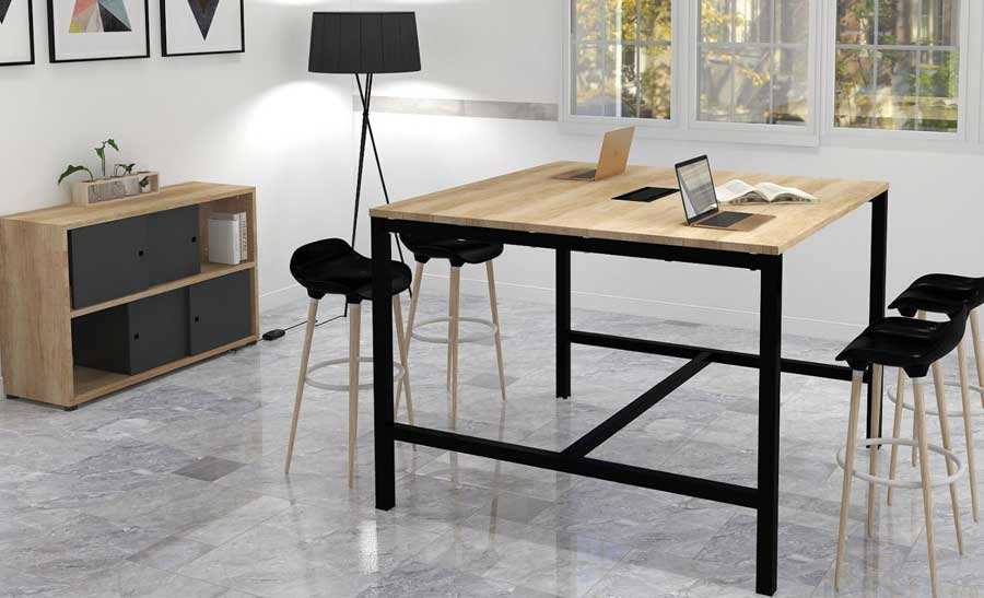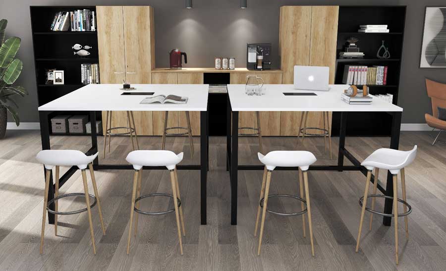 ASTROLITE Coworking Area High table, 25mm top, metal Square arch legs & foot rest bar