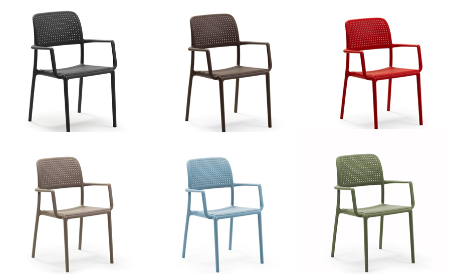 BORA One piece polypropylene chair with arms, non-slip feet, Matt, Recyclable.