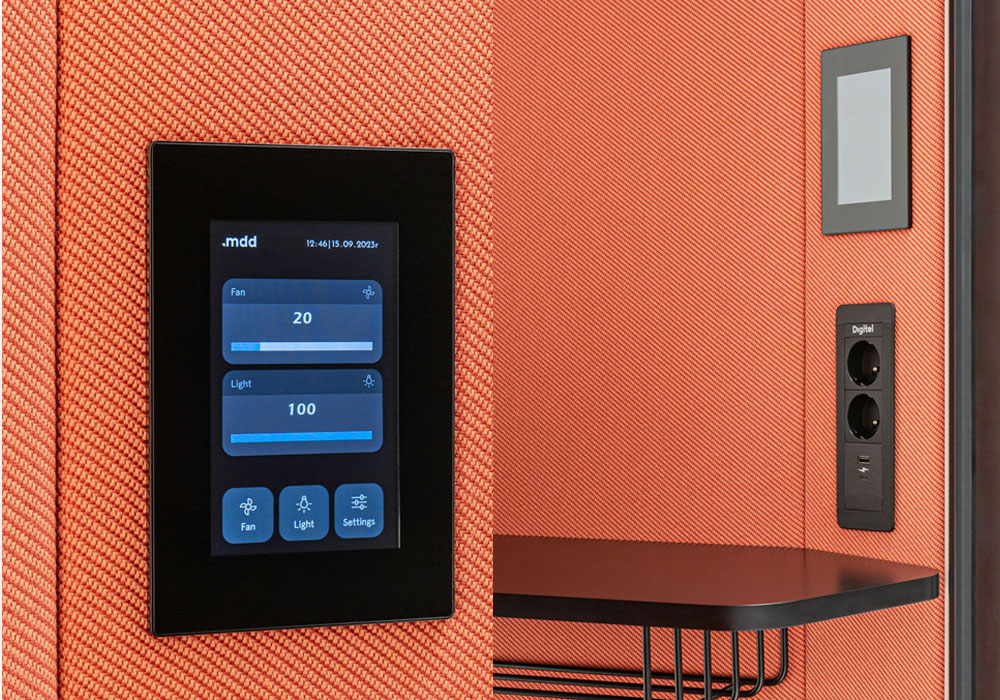 Coda acoustic booth from MDD is a combination of functionality, aesthetics and technology. It’s a modern solution for providing silence and privacy in open offices and public spaces. The booth is ideal for phone calls, video conferences and individual quiet work.