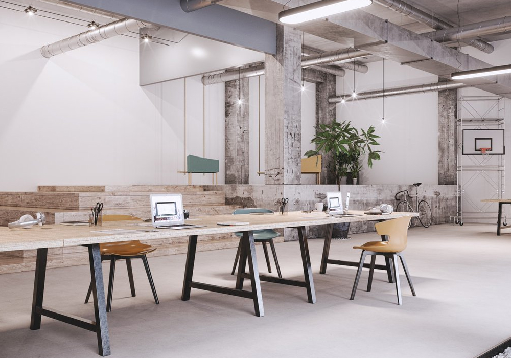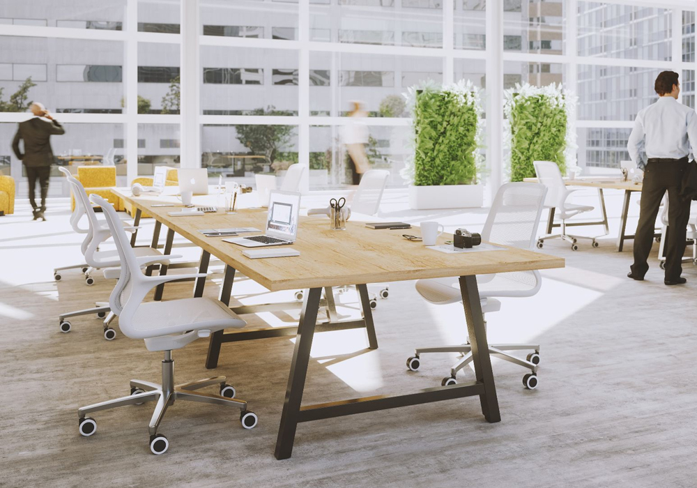 COHESION Coworking table with 38mm tops and metal or wooden A arch shaped legs