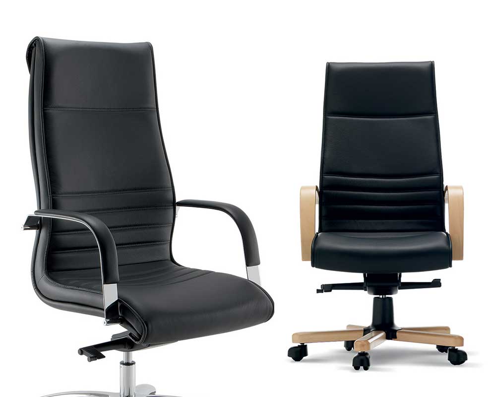 The Dama is an executive armchair. Customised by chrome plating and wooden inserts, distinguished by the visible stitching on the padded backrest, Dama brings together tradition and glamour that ensure comfort, good taste and functionality.