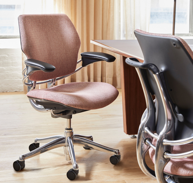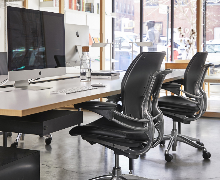 Freedom task chair is an award‑winning chair from Humanscale. This task chair combines a sleek, modern aesthetic with exceptional ergonomic performance. Its physics‑driven design responds naturally to your body, offering continuous support as you shift and move rather than forcing you into fixed positions. The sculpted backrest and generous cushioning enhance posture and long‑term comfort, making it equally at home in a workspace or a living environment. With Net Positive certification, each chair contributes to environmental restoration, and the 15‑year warranty underscores its durability and long‑term value.