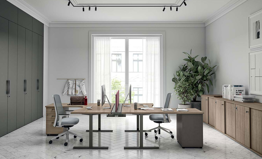 This modular desk system enables a multitude of compositions and excellent space optimisation, according to individual needs.