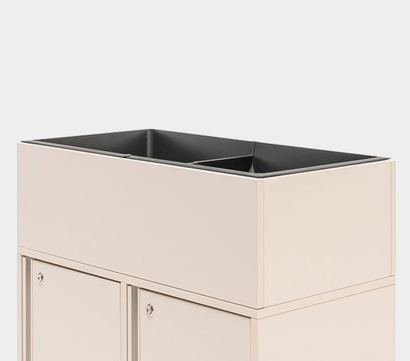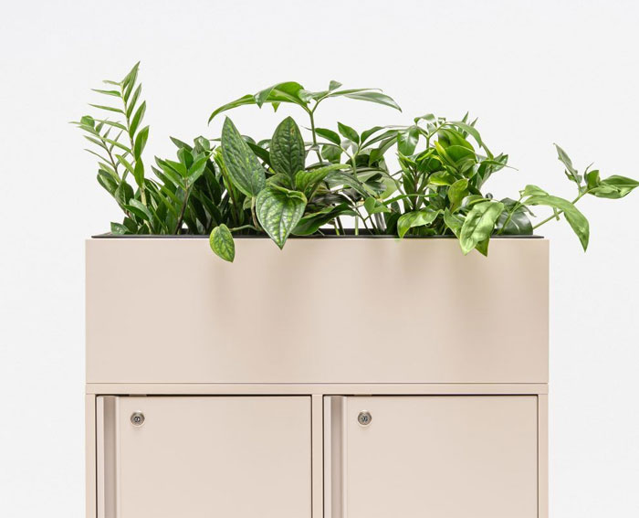 Locker Plus from MDD is a chipboard plant pot with a black insert. The plastic insert provides optimum conditions for plants. These plant pots are designed for offices, receptions, cloakrooms, educational and public spaces. The selection of 8 stylish colours is matching the colour range of the Locker Plus cabinets, which allows for a seamless fit. Width 800 mm, suitable for double-width lockers, height up to 250 mm.
