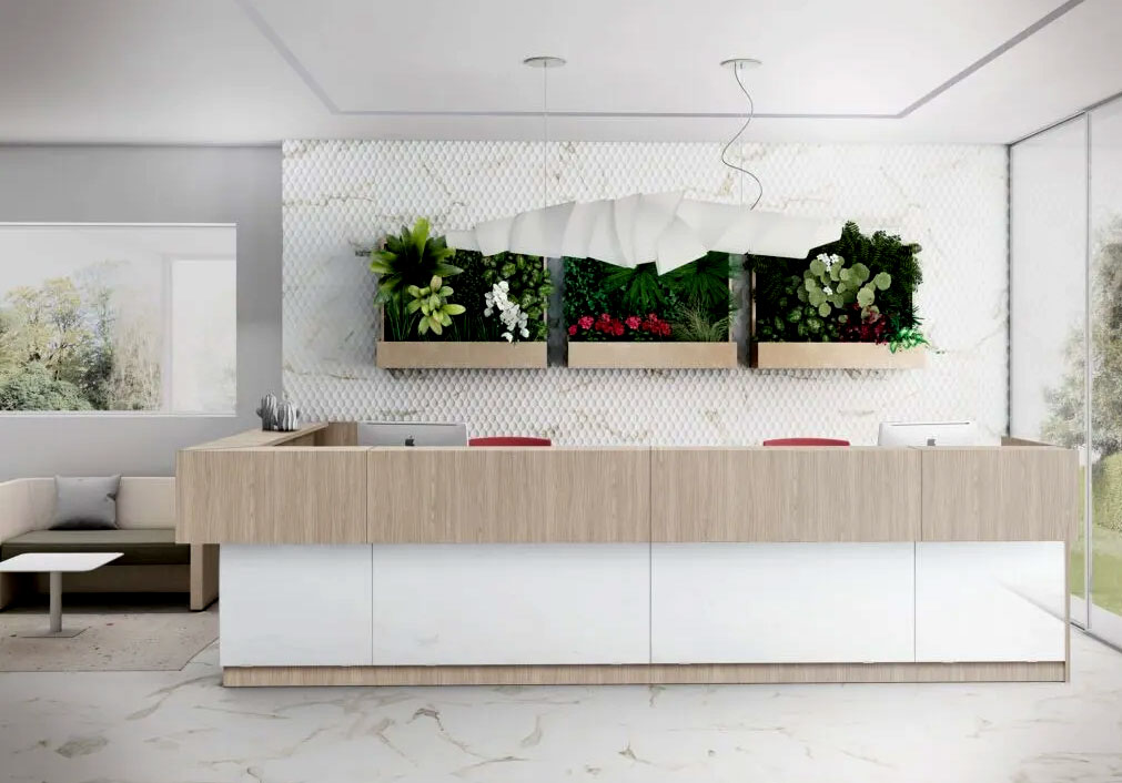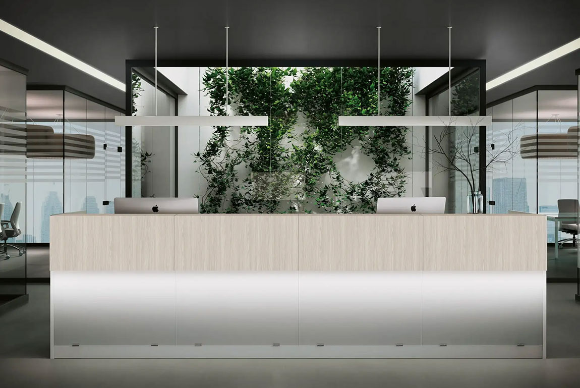 The Lodge is a modular reception system from Arteco, which allows different configurations according to the specific needs of an area. The reception is characterised by an exceptional quality and elegance. Thanks to the crystal, glassy reflections of the finishes combined with the fullness of led light, it creates evocative atmosphere in the reception area.