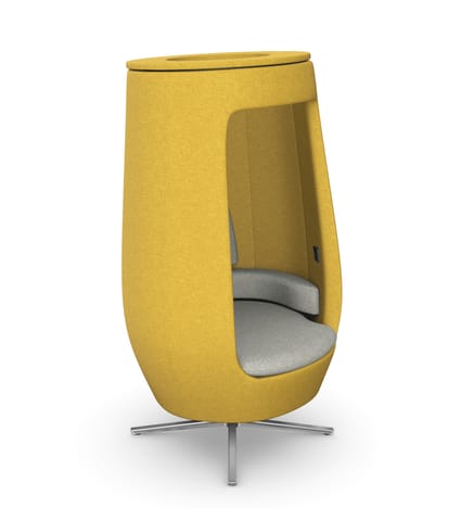 A11 acoustic properties lounge chair is the first step by Hushoffice beyond its line of workpods. A modern, designer, futuristic, and functional lounge chair, available in a closeable (A11) or open version (A11.open). It allows to create your own private space to escape from the everyday hustle and bustle. At the same time, the A11 chair provides the comfort associated with luxury and a unique experience that will enrich your working day, as well as offer some moments of relaxation. The cylinder-like form enclosing the user on almost all sides creates an intimate space for individual work, phone calls or informal conversations.