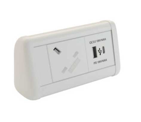 The Mini and Maxi desktops are compact white RAL 9003 in colour with optional interchangeable coloured end caps and lids to suit the office colour scheme or mood of the user. Each unit comes with desk clamps and an adhesive pad. A 500mm lead to male 3-pole connector gets under the desk before connecting to a START lead.
