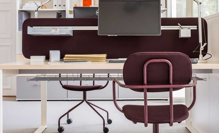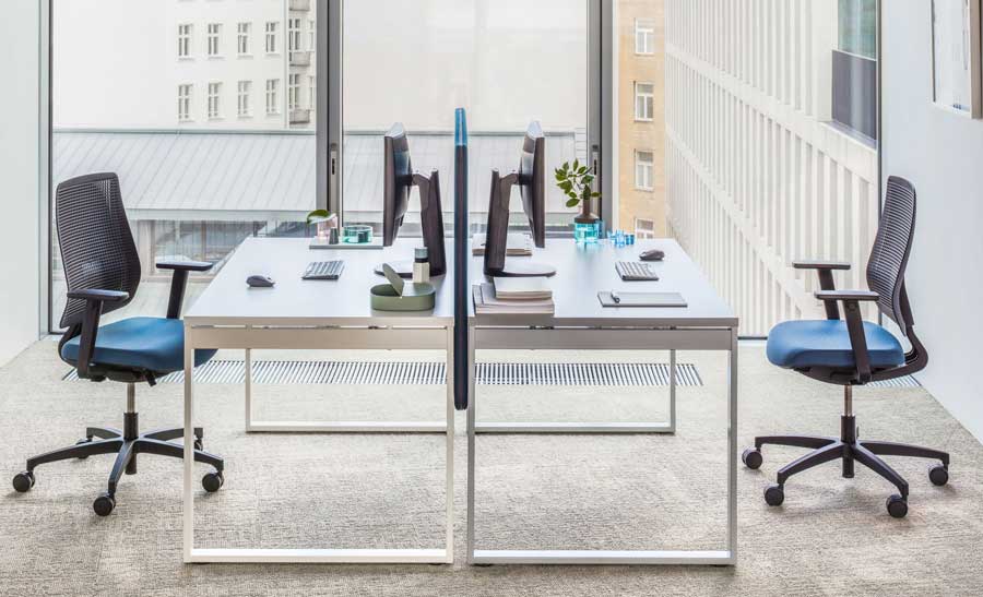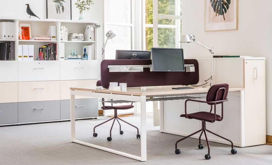 OGI Q Bench Desking – Two workstations with metal closed leg design