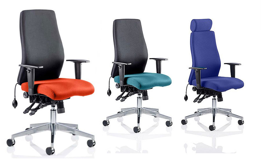 The Onyx chair is a fresh, contemporary office chair that offers a range of inspired features such as a multi-functional asynchronous mechanism with multiple adjustments and a contoured foam seat and back for extra support and comfort. The Onyx is a top choice for a posture task chair. Available in black or blue fabric and Soft Bonded Leather upholstery options. Optional headrest variant available.