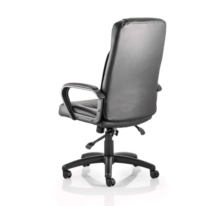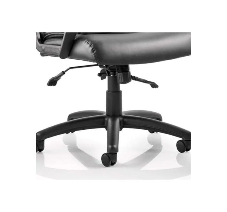 The Plaza office chair blends traditional elegance with contemporary touches to the style. This chair offers a perfect balance of comfort and sophistication. It features an integrated headrest and sleek contour lines on the back and seat, displaying refinement in every detail. With its soft padded seat and armrests upholstered in high-quality bonded leather, this chair ensures comfort during extended periods of use. Equipped with a twin lever infinite lock mechanism for customizable seating positions and complemented by matching nylon 5-star base and arms, the Plaza combines functionality with timeless aesthetics, making it a versatile and stylish choice for any workspace.