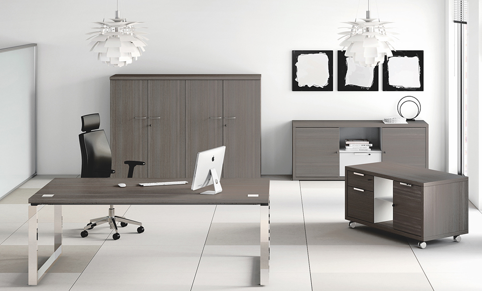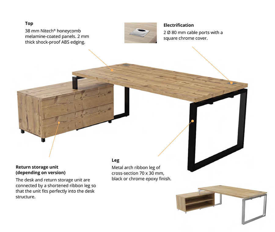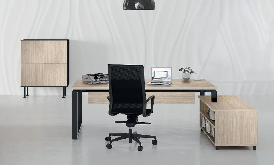 Prestige Executive Desk 25mm Top, 3mm Edge, Square Leg, Black or Chrome Finish.