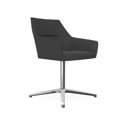 The collection offers chairs with thin metal frames, on wooden legs or a 4-star base. Chic armchair is designed for relaxation zones in hotels, guesthouses, lobbies and offices. It has a characteristic low-seated shape compared to standard seating, with reclined shells and extremely comfortable foams that welcome users to enjoy less formal meetings. Chic seating is mounted on a swivel base equipped with an auto-return function, making it ideal for areas that need to be kept neat and orderly.