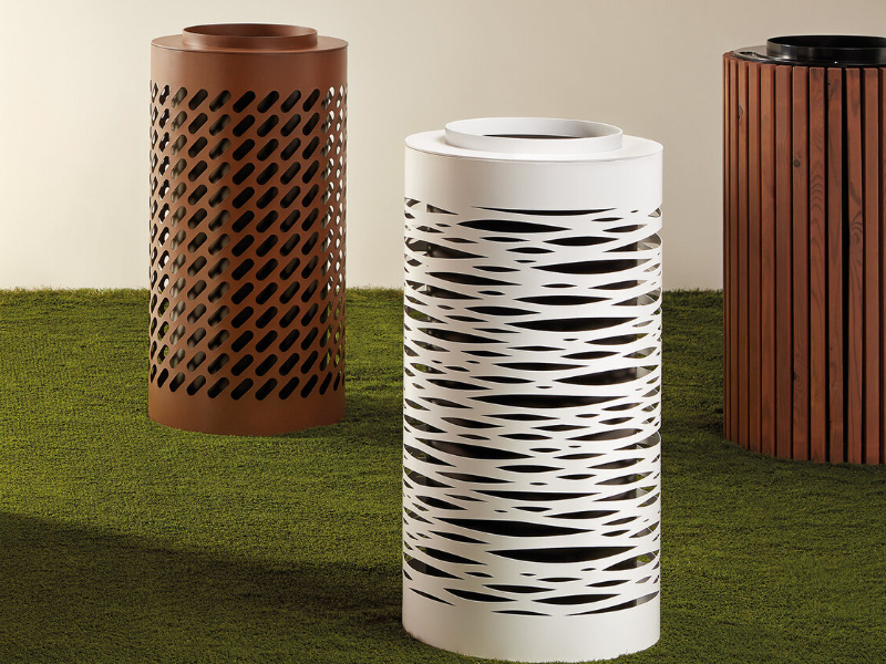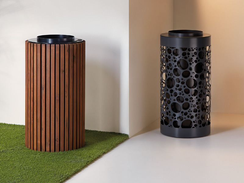 Nyon bins are very stylish, they come In two sizes, with three designs and colours. There is also a version of treated cedar wood for outdoors allowing you to integrate it perfectly into any landscape.