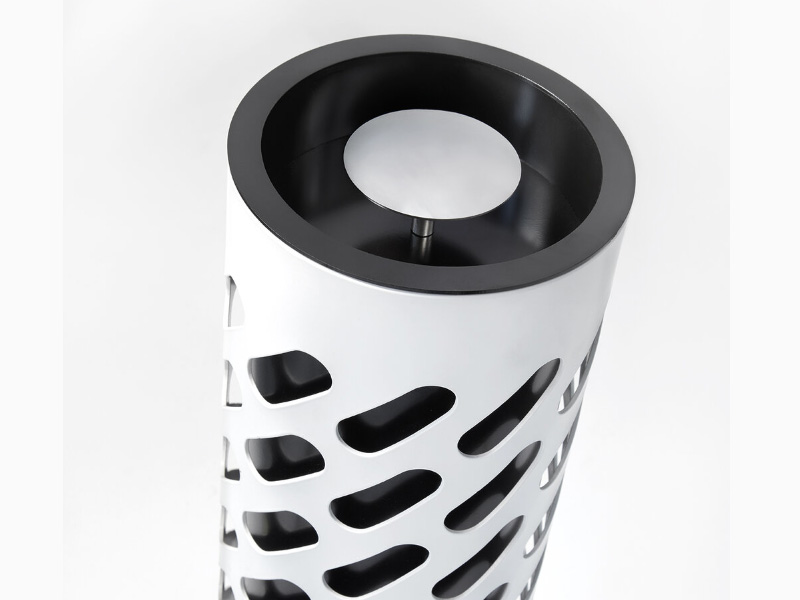 The Nyon bin from MadeDesign is a bin consisting of two cylinders made of 1.5 mm sheet metal and a 4 mm lid. The outer cylinder is decorative and can be replaced by wooden slats. The inner cylinder is used to hold the bag. The base and body of the bin unified by welding. Base supplied with rubber blocks to protect the surface where it is located.