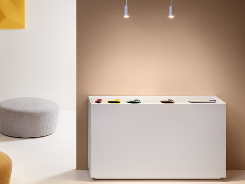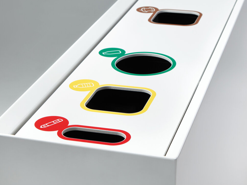 The Zell recycling station from MadeDesign allows to separate three to five types of waste. It’s perfect rectangular lines integrate beautifully in any environment, almost going unnoticed.