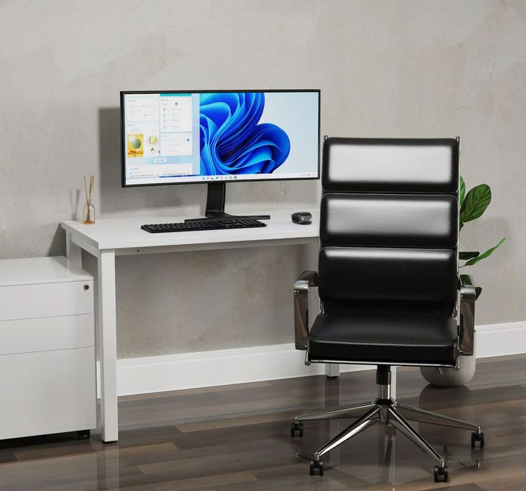 The Savoy High Back Executive Chair is a refined seating option that can elevate the ambiance of any setting, especially professional environments. It features a distinctive split backrest design with clean lines and a symmetrical layout, which provides an excellent seating experience. The deep padding cushions offer unparalleled comfort for extended periods of sitting. This chair has a chrome detailed frame and base, which is perfectly complemented by brushed aluminum armrests, making it an attractive and stylish addition to any workspace. The Premium Bonded Leather upholstery material further adds to its elegance. Some of its notable features include a twin lever infinite lock mechanism for customizable seating positions, weight tilt tension control for personalized comfort adjustment, and fixed brushed aluminum arms for added durability. The chair's cohesive aesthetic is completed with the chrome frame, 5-star base, and arms. If you're looking to add a touch of class to your office, this distinguished collection of chairs is an excellent choice. You can indulge in a seating experience unlike any other, and work in comfort and style.