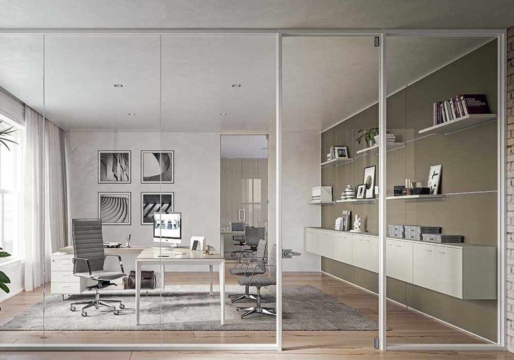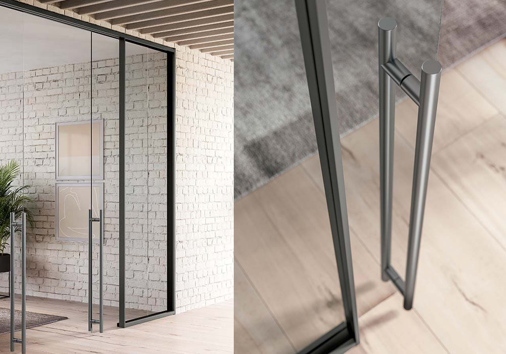 M1 allows to create separate rooms, which correspond to the outside thanks to the glass walls. These rooms are equipped with an entrance with a hinged or sliding door, complete with elegant aluminium handles with lock.