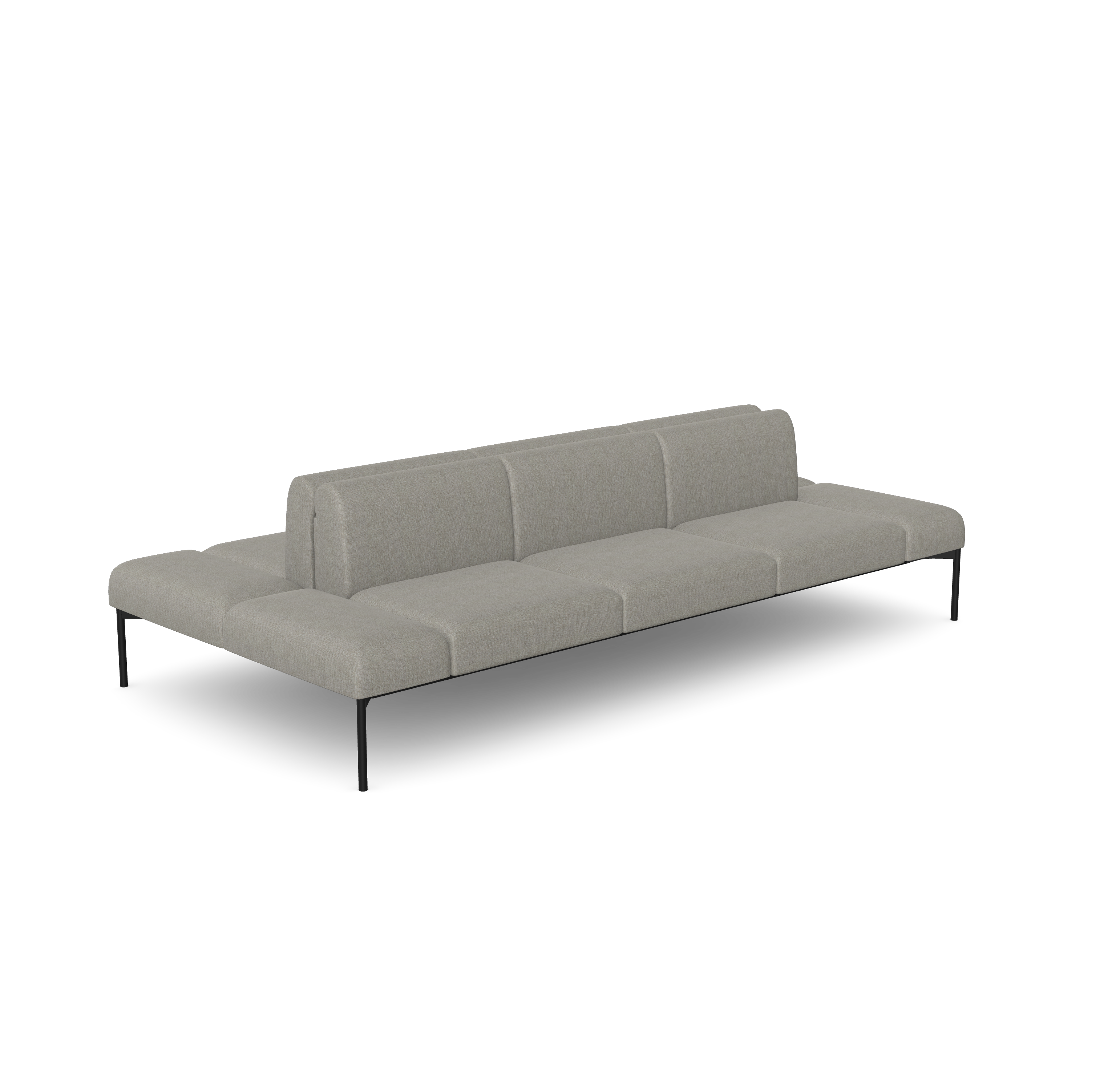A distinct hallmark of the collection are additional panels, available in two heights, which can be fastened to the backrests. Depending on the selected height, they may separate work and rest zones or serve as divider screens which nevertheless preserve the open formula of the sofa or armchair. It is also possible to reverse the modules and, in large islands, join the back supports together at the rear end, forming two rows facing opposite sides.