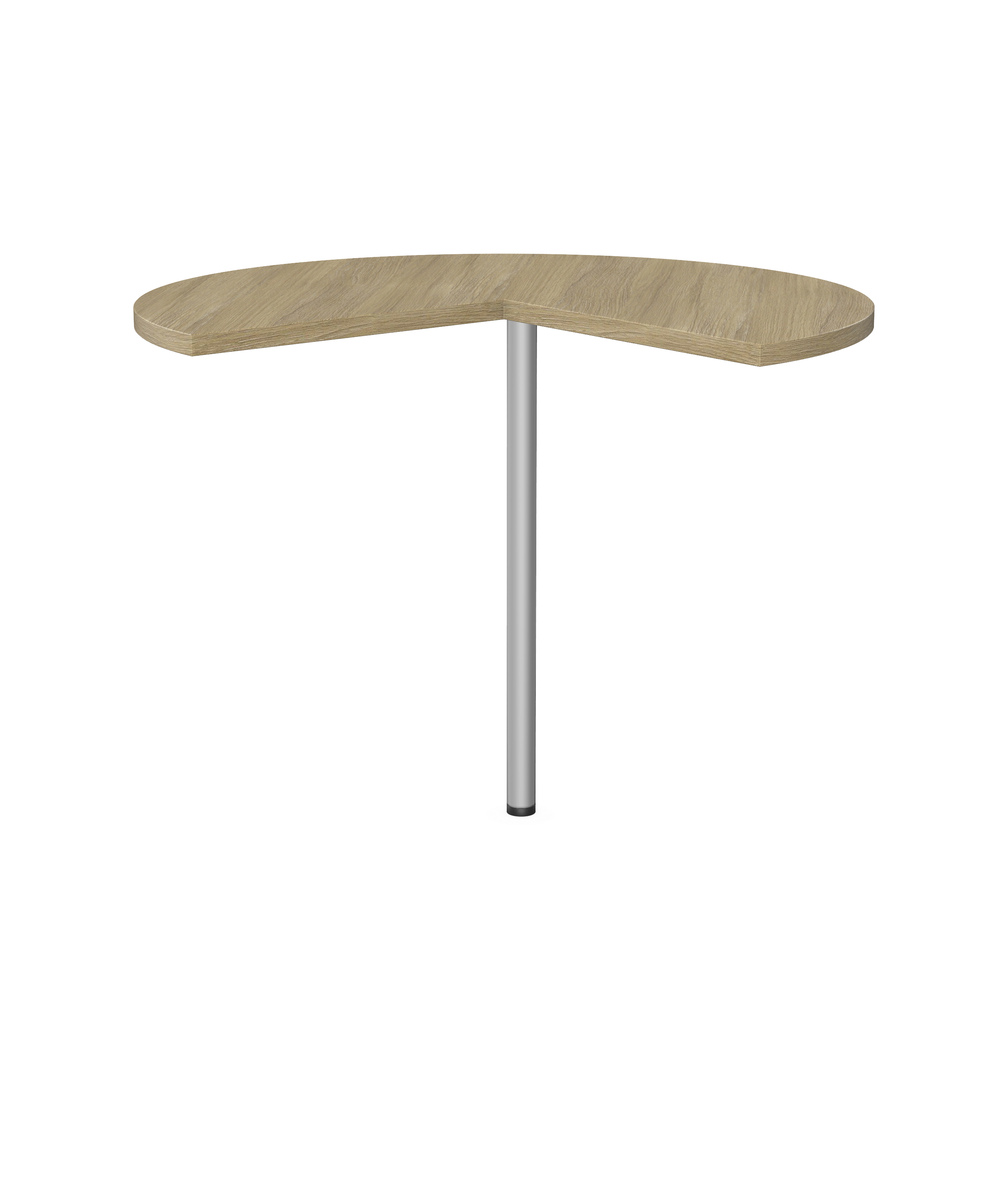 A round desk attachment from Kronospan. It allows to enlarge the working surface of the desk. The attachment has the same thickness as the desk and an adjustable in height leg. Space underneath allows to use it as a desk.