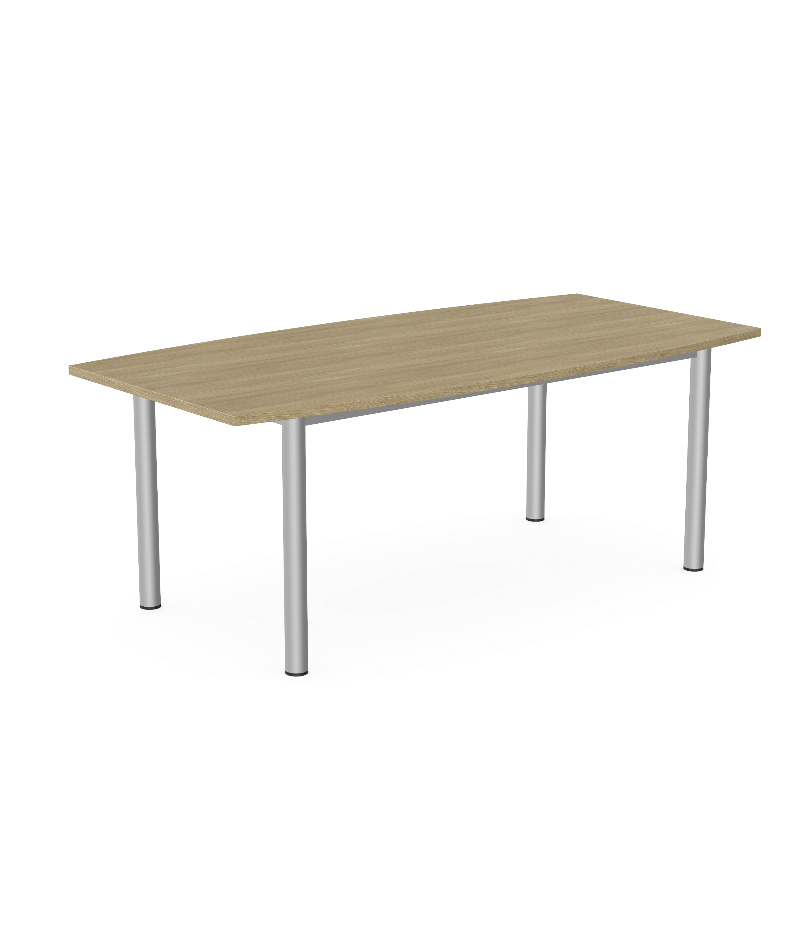 Sove table SV-43 with dimenstions; width 190cm, depth 95cm , height 72cm. It's barrel-shaped table top give it a modern and minimalistic aesthetic. The table has a 25mm thick top, finihsed wtith a 2mm Rehau edge. Featuring a melamine-faced board and E0.5 hygeine classas well as a powder coated metal table frame. It also includes floor curvature levelling regulators. Table weight; 43kg.