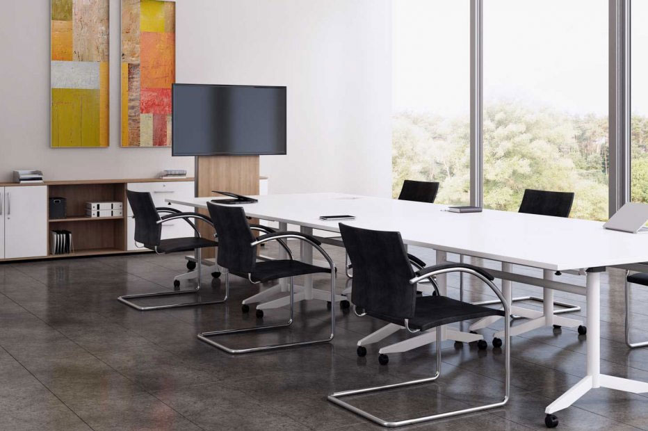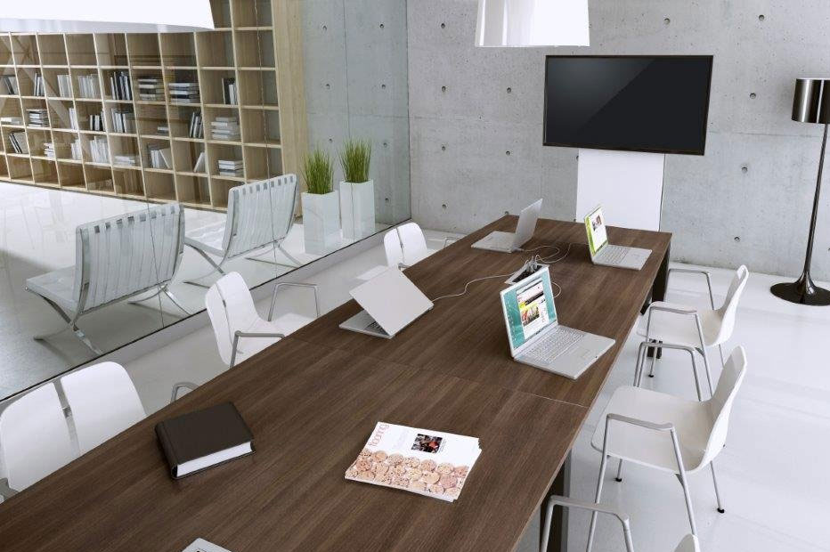 The System –eM Multimedia stand is an excellent addition to a conference, training or seminar room. It will also be an excellent solution for the reception area. Well done construction allows to fix all different kinds of TV sets, including cable leading space.