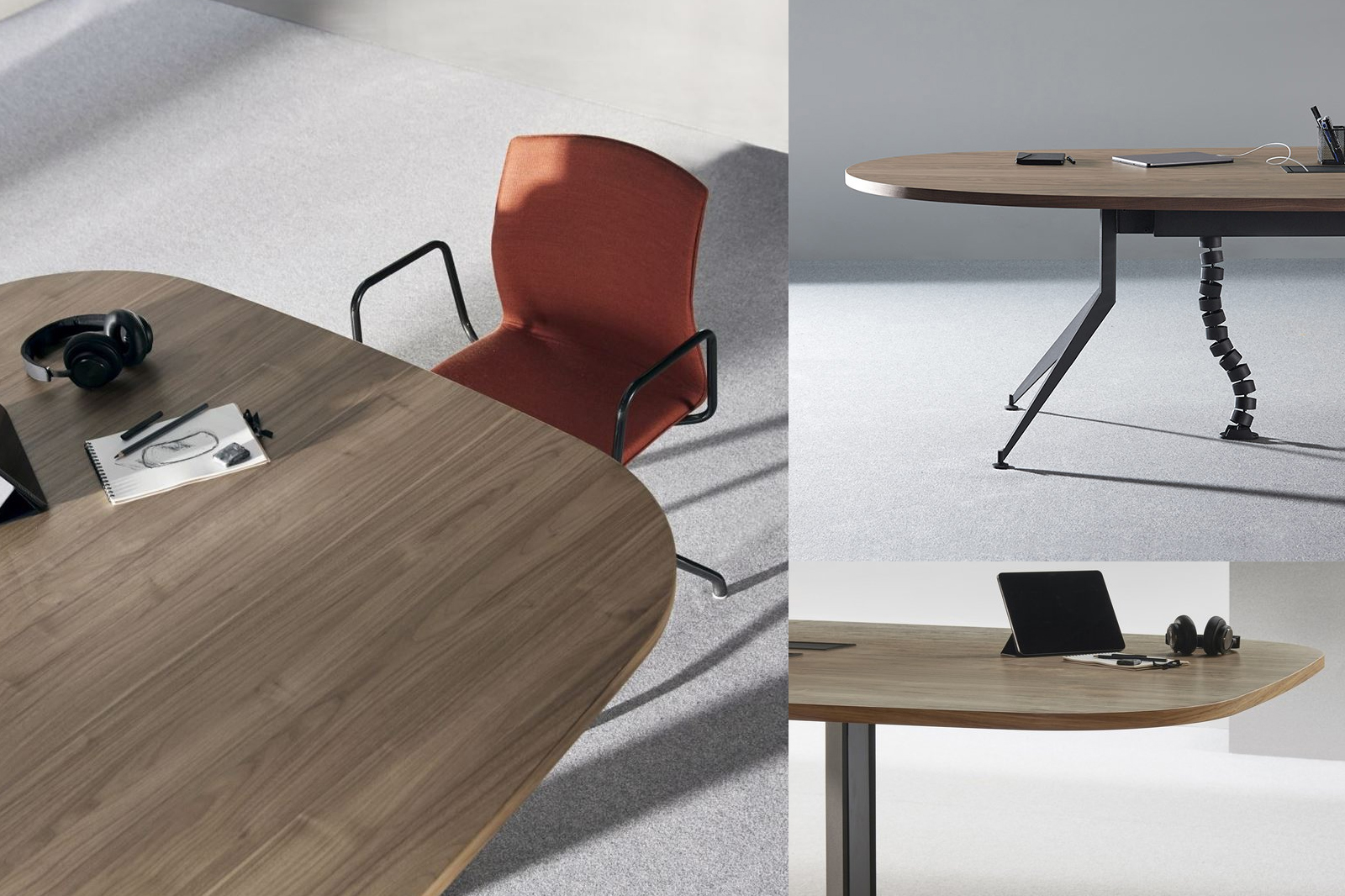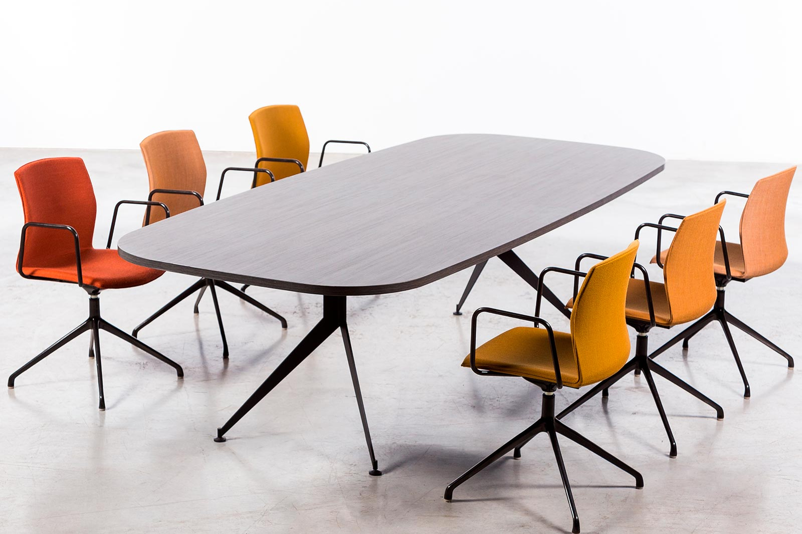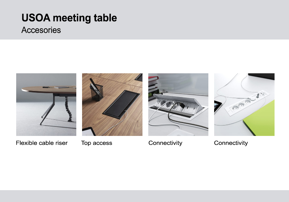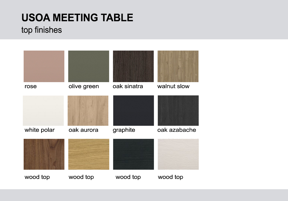 - Meeting tables available in two options: boat-shaped and oval