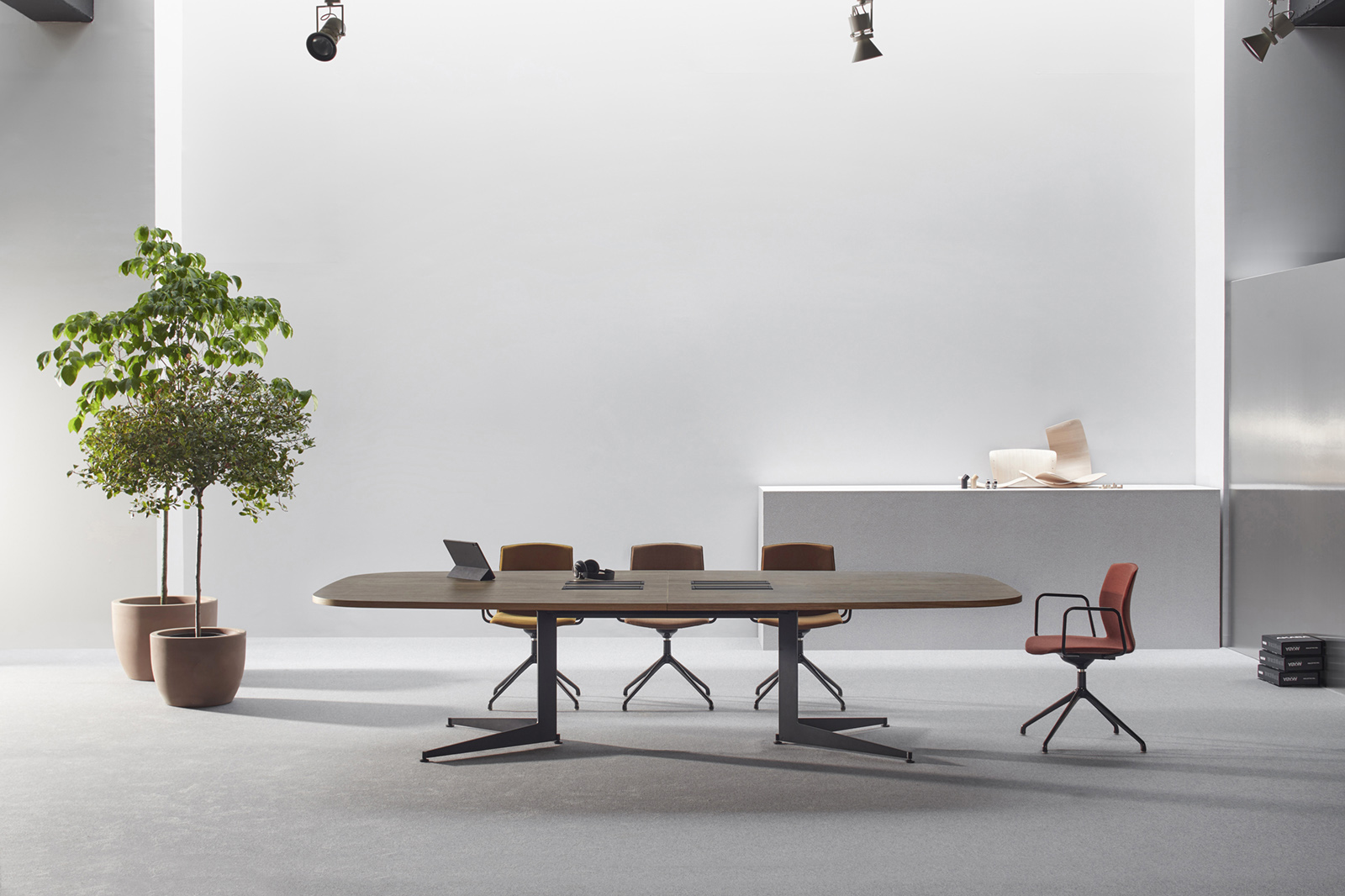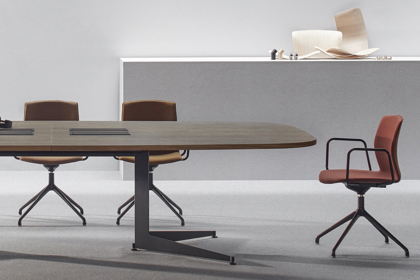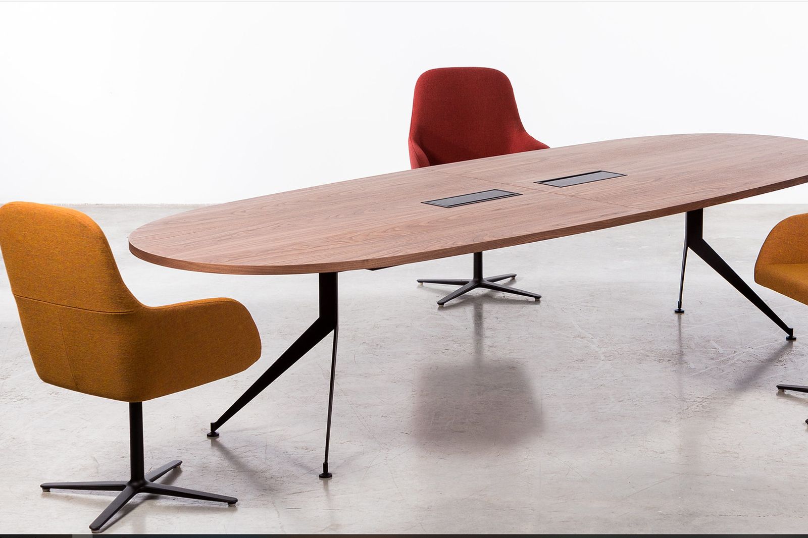- Meeting tables available in two options: boat-shaped and oval