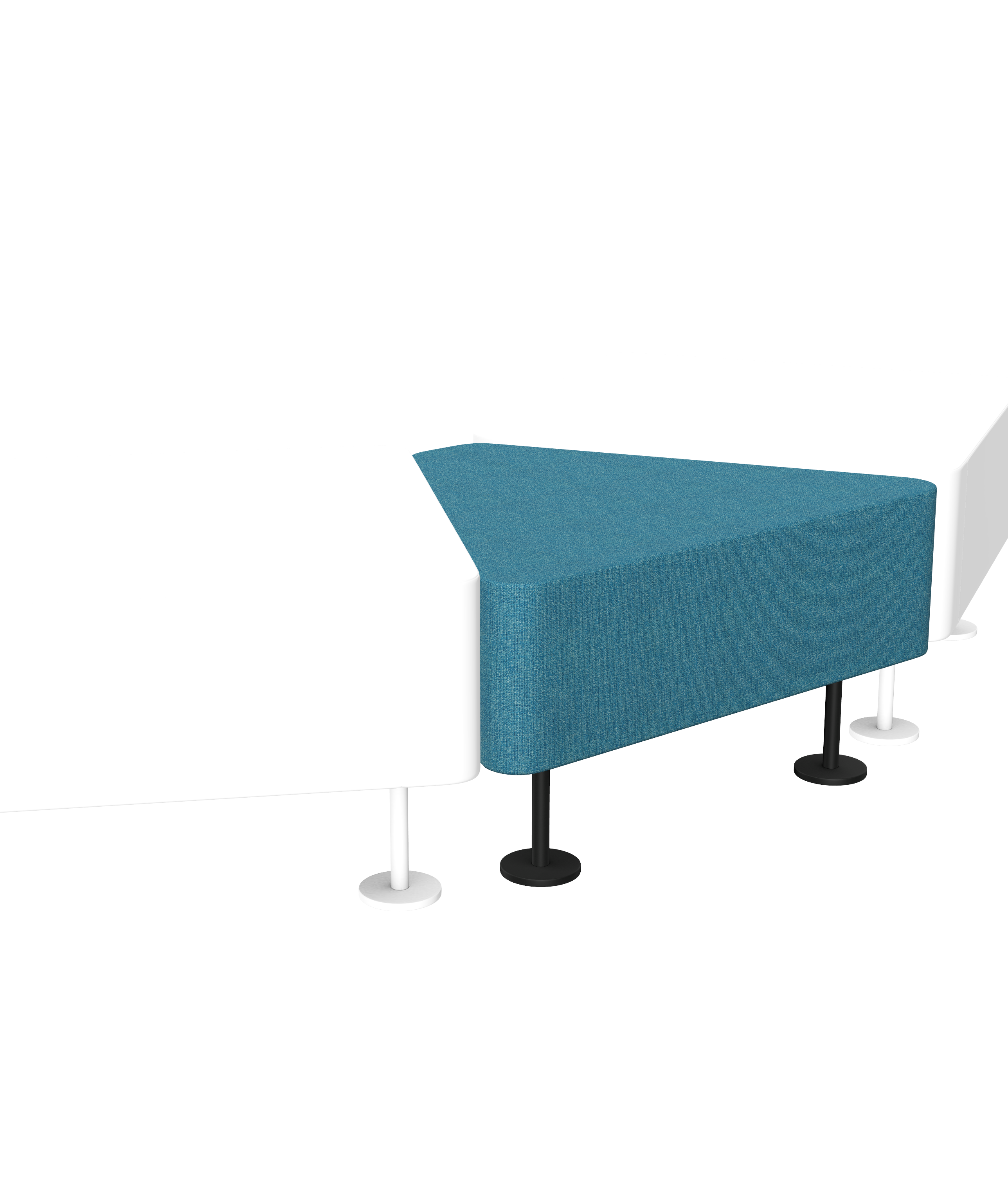 Wall In is a modular seating system characterized by simple geometric forms, suitable for spacious and modern interiors such as halls of public buildings and receptions. The collection has been developed to offer a highly versatile mobile sitting configurations, easily rearranged and adjustable. The family comprises poufs, armchairs, tables and linking units (30 and 60 degrees) completed with partition walls upholstered with structural fabric. The wall fulfills a separating function marking out a space perfect for a private conversation. Legs finished off with esthetic, chromed plates are the eye-catching elements of the furniture.